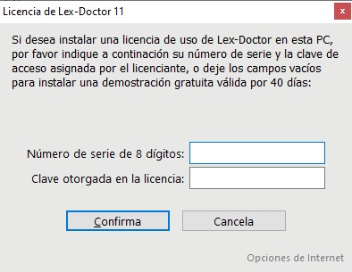 Presione confirma, y si la descarga de licencias fue exitosa aparecerá la pantalla de instalación de Lex-Doctor 11. Para avanzar, seleccione el que desea realizar: