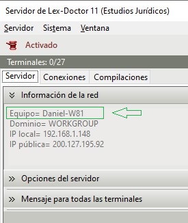 Se puede verificar el nombre del servidor desde la aplicación servidor de Lex-Doctor.