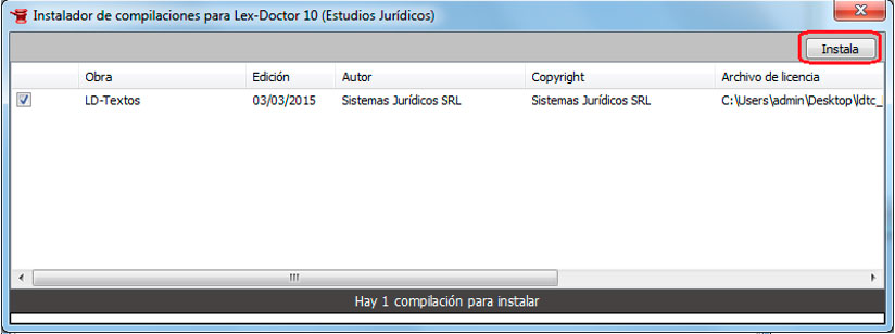 Finalizada la instalación, acceda a Lex-Doctor, diríjase a Compilaciones y haciendo click sobre el ícono de LD-Textos, podrá visualizar la fecha de la nueva publicación instalada.