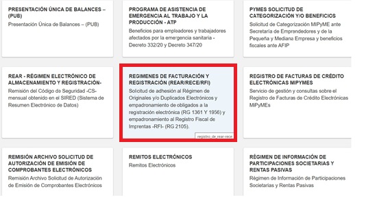 Volviendo luego a Empadronamiento REAR/RECE/RFI en la opción Ver trámites pendientes podrá visualizar si su pedido ha sido ya procesado y en Ver empadronamiento actua podrá constatar su inscripción al régimen.