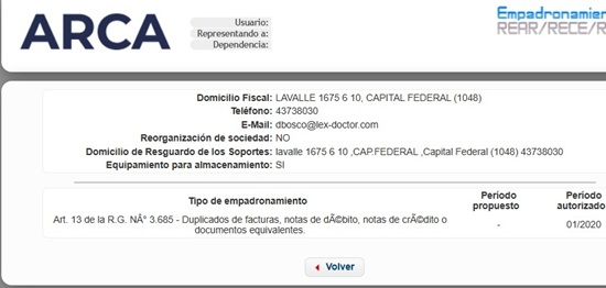 Rubro II completar con datos donde dejarán copia electrónica de los comprobantes.