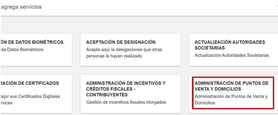- Ir dentro de Servicios Habilitados a la opción Administración de puntos de venta y domicilios.